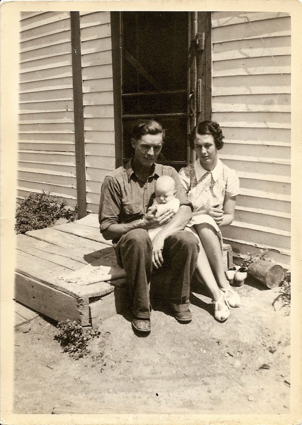 | This is my grandparents and my uncle Skip in 1939. Grandma had written "Grapes of Wrath" on the back. Heartbreaking and heartwarming at the same time. |